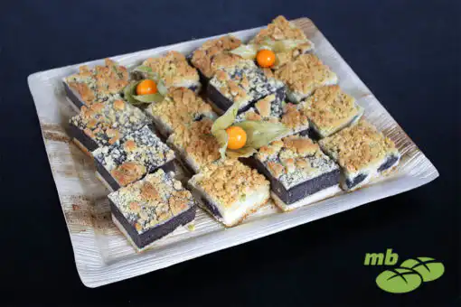 16er Mohn-Kuchenhäppchen Platte mit den Sorten Käse-Mohn und