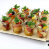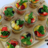 12er Obstsalat Platte mit Früchten der Saison und frischer Minze im Schälchen.