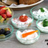 Frischkäse, Kräuterfrischkäse, Cherrytomaten, Gurkenscheiben,