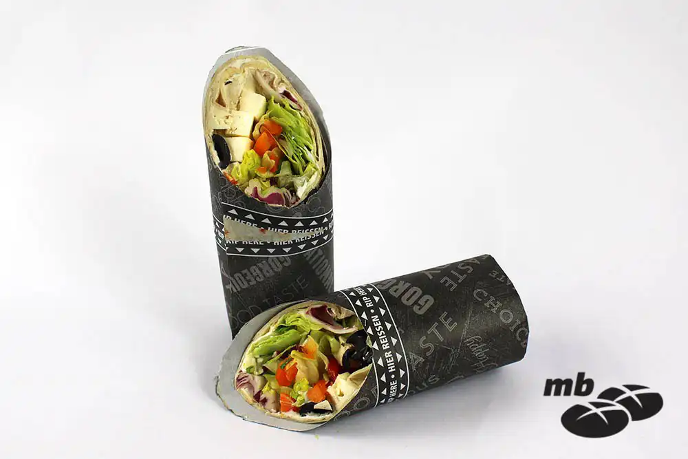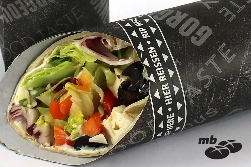 Wrap gefüllt mit Schafskäse, Olive, Paprika & frischen Salat.